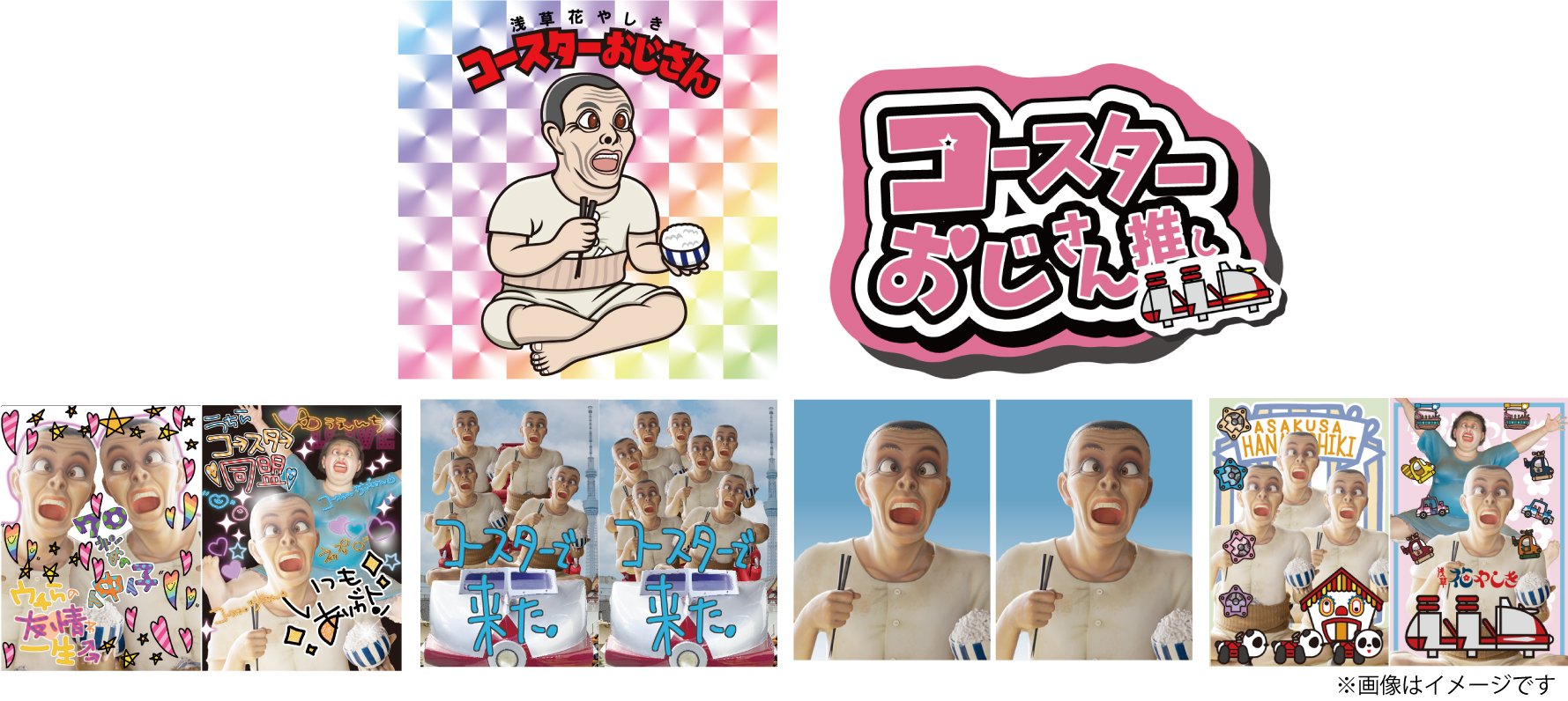 【参加方法】 上記期間内に、花やしき公式 LINE の友だち登録、または既に友だち登録をしている方に、「コースターおじさんガシャ」のステッカーを 1 枚プレゼント。園内お茶の間フォト会場にて引き換えを行います。