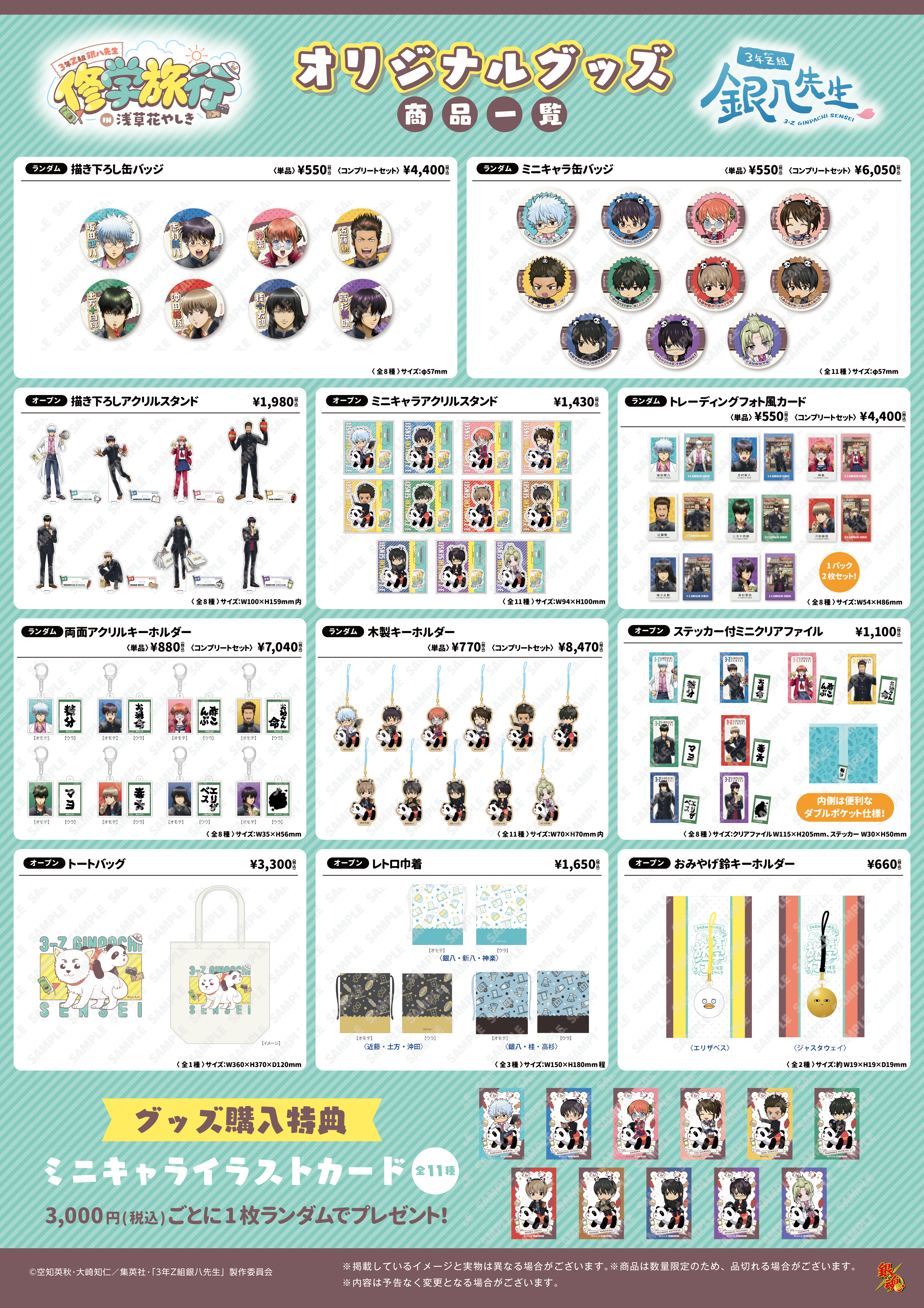 TVアニメ『3年Z組銀八先生』関連グッズを3,000円(税込)ご購入ごとに「ミニキャライラストカード」(全11種)をランダムで1枚プレゼントします!