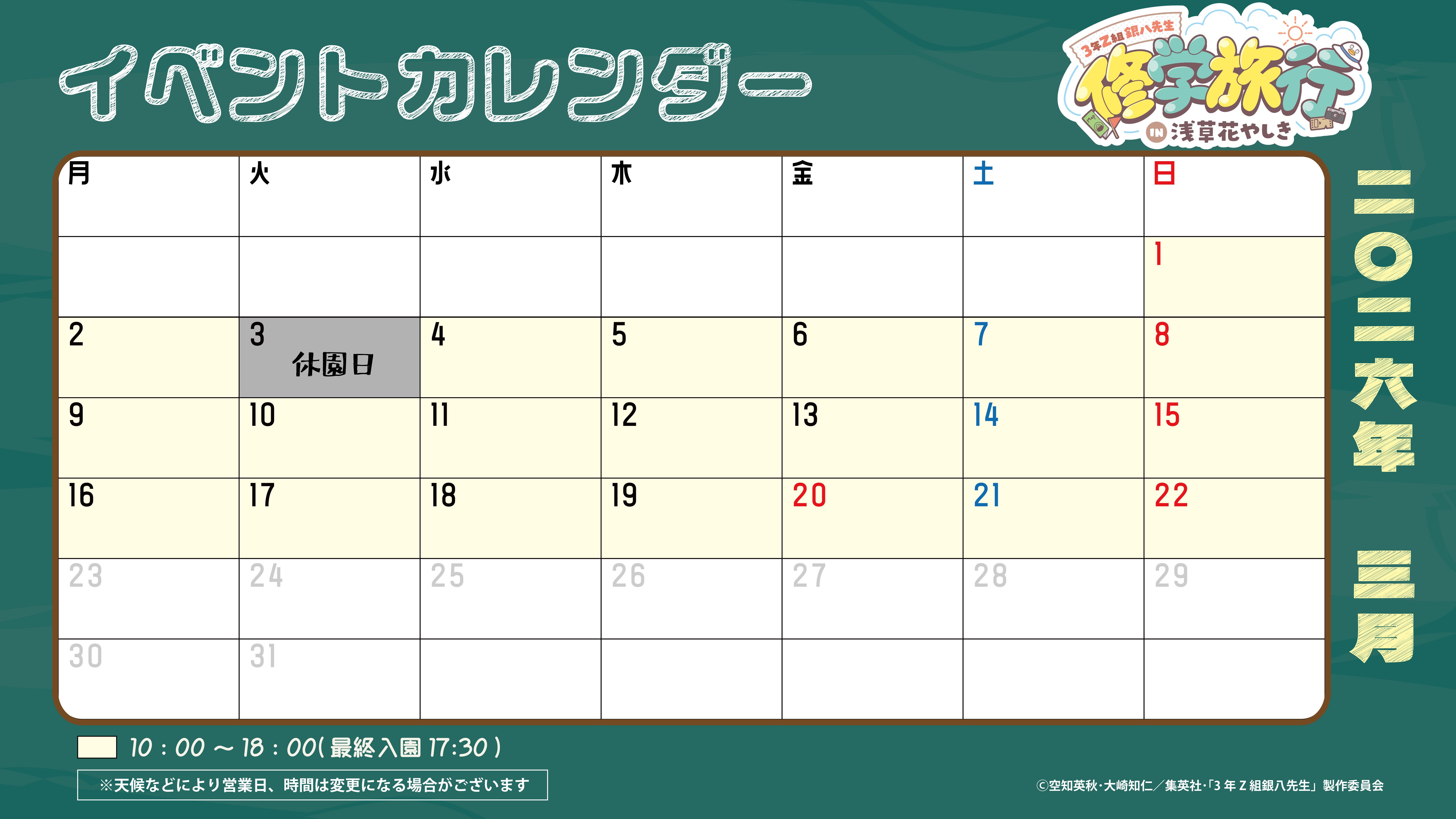 コラボレーションイベント「3年Z組銀八先生 修学旅行 in 浅草花やしき」開催概要