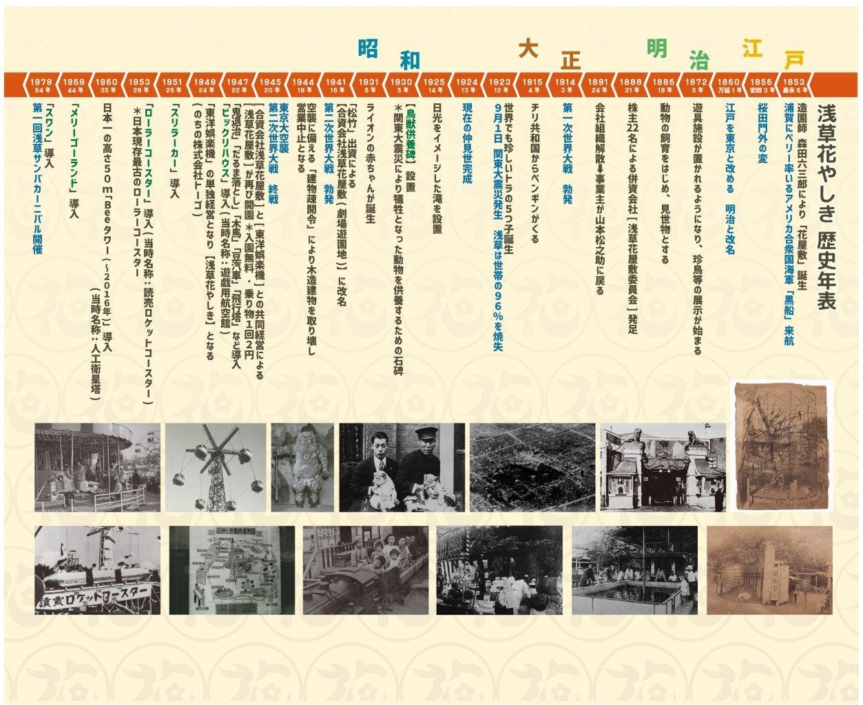 ペリーが黒船で来航した嘉永6年( 1853年)に花園として誕生した「浅草花やしき」。現在の遊園地として営業する前、ちょうど100年前の昭和元年は、動物園として営業していました。