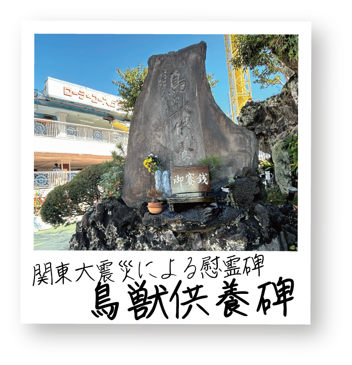 その後、1930 年、震災で犠牲となった動物を供養するため慰霊碑が建立されました。