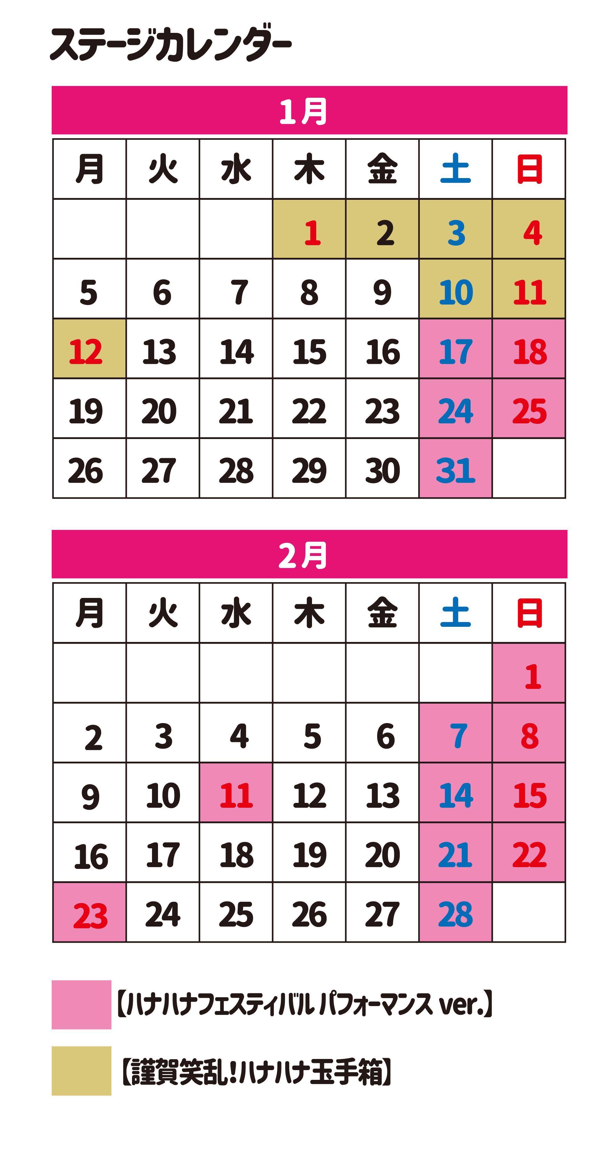 1~2月のステージスケジュール