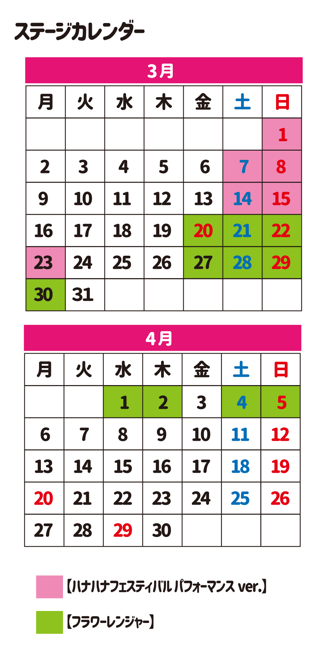 3~4月のステージスケジュール